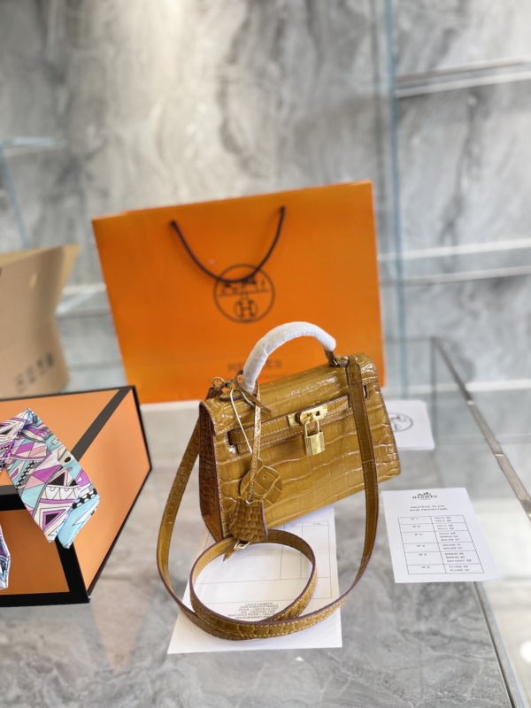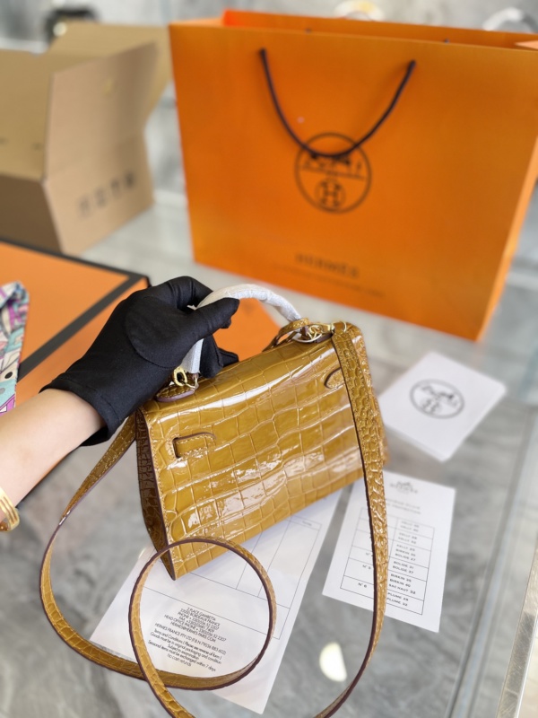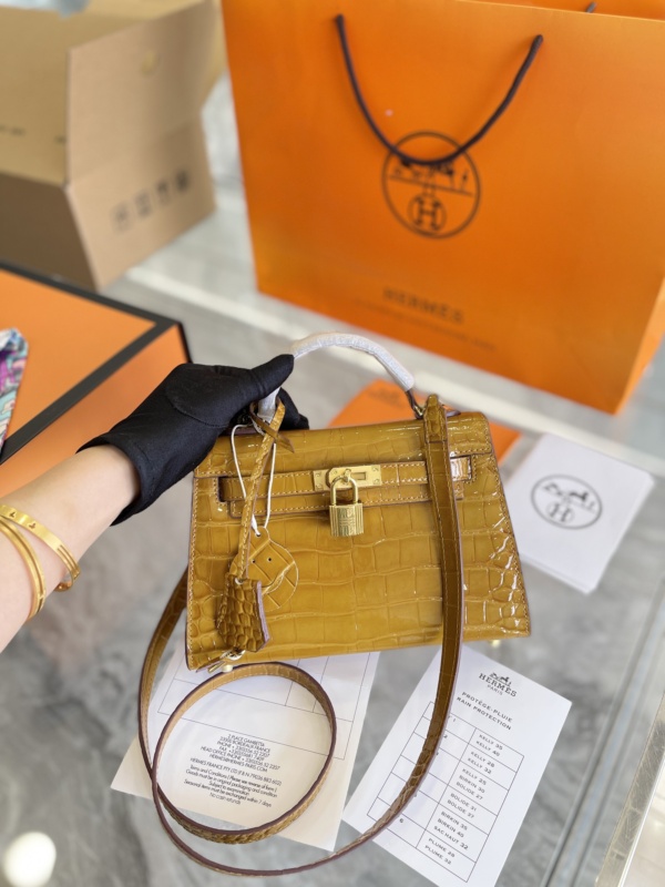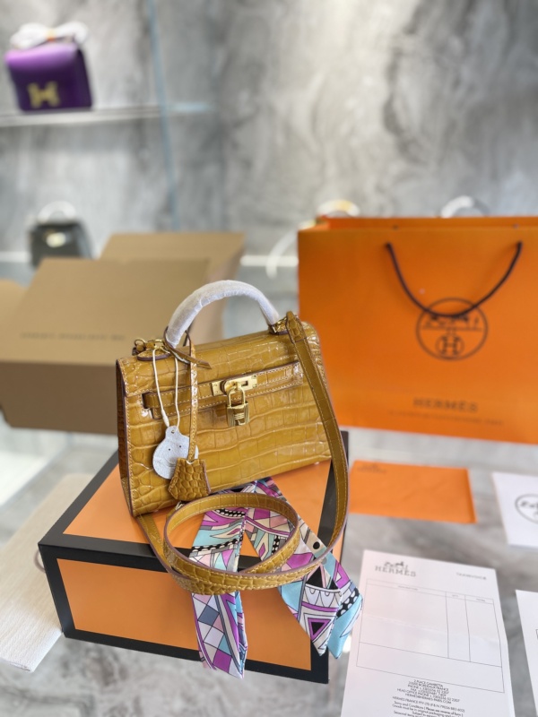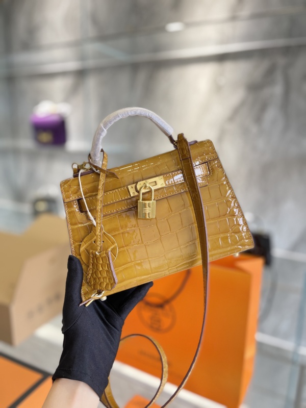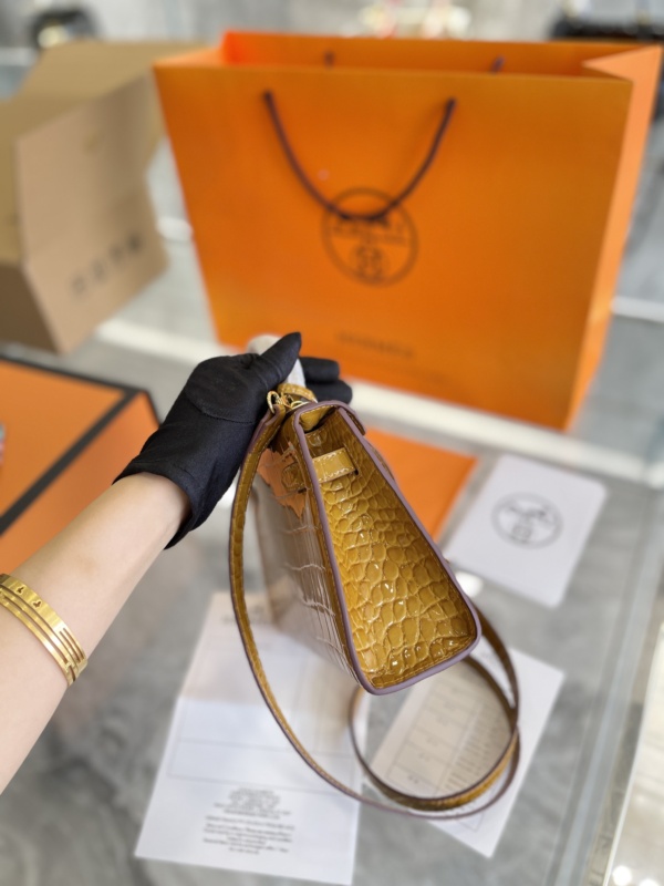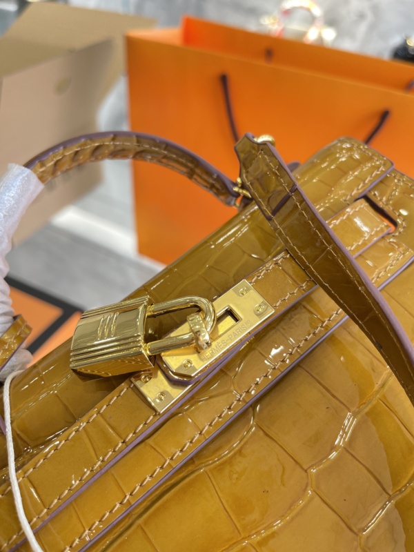 HERMÈS KELLY ALLIGATOR CROCODILE GOLD BUCKLE YELLOW 22CM