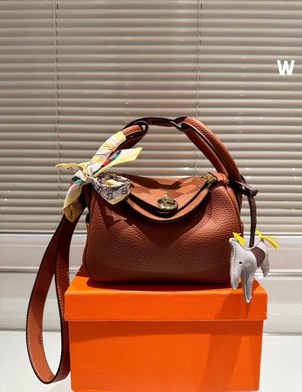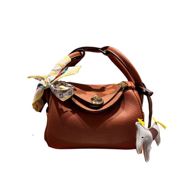 HERMES LINDY BAG WITH SCARF HANDLE AND HORSE CHARM BROWN 20CM