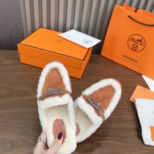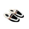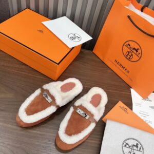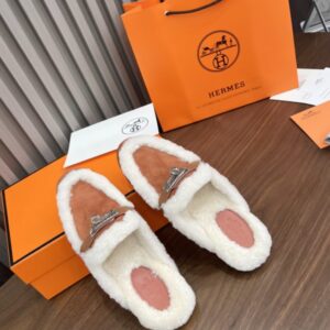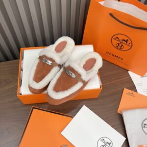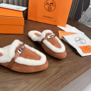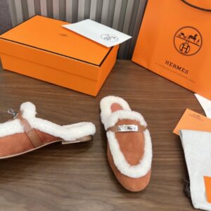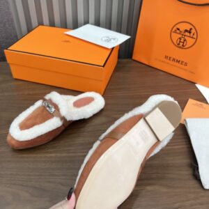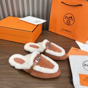Mule in calfskin and shearling with iconic palladium-plated Kelly buckle.