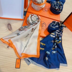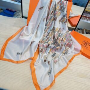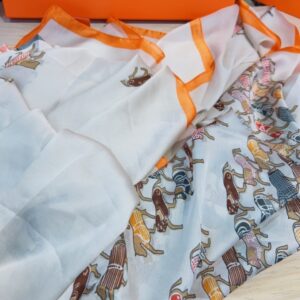 HERMES SILK SCARF ART NOUVEAU PATTERN WHITE 90CM