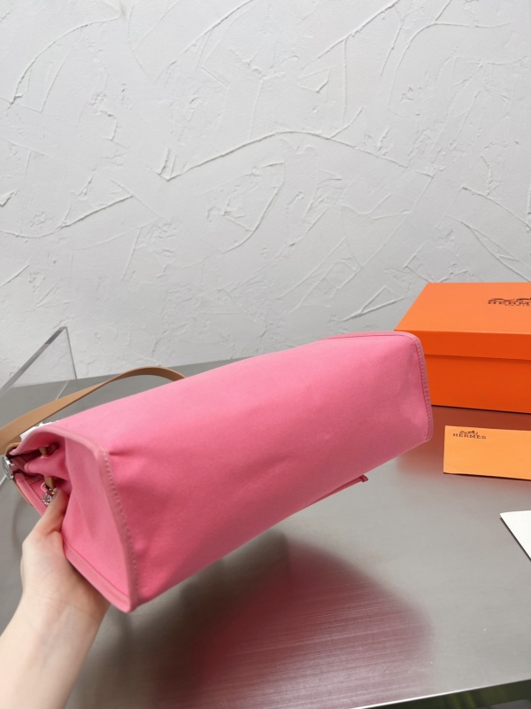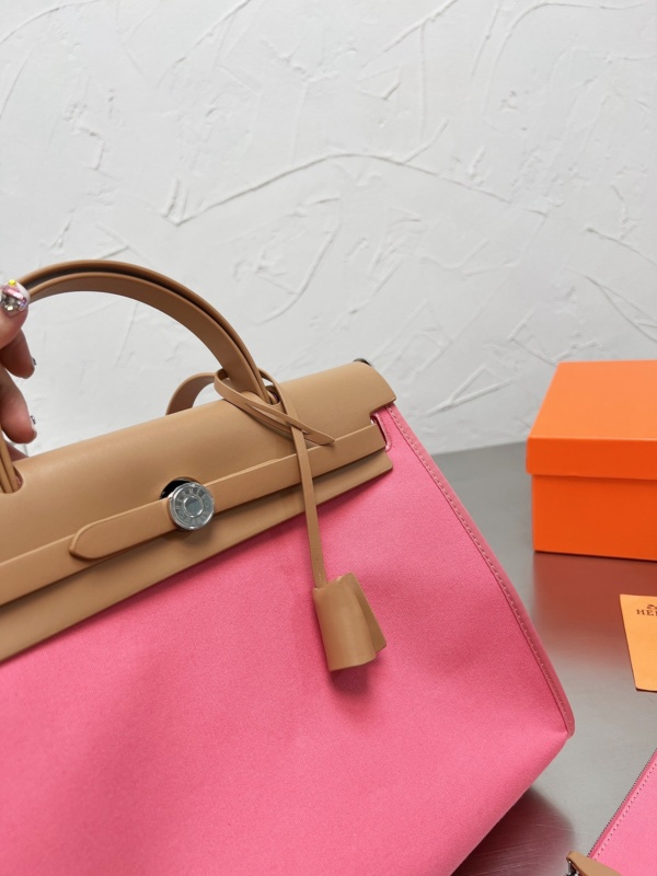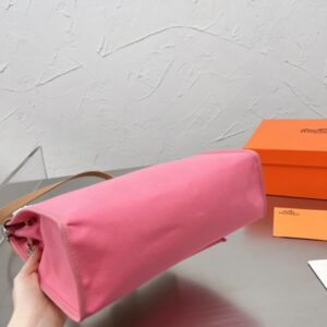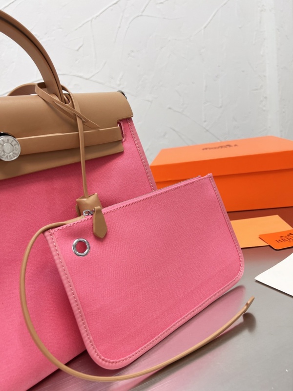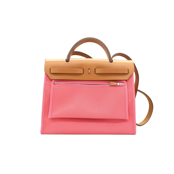 HERMÈS VACHE HUNTER TOILE HERBAG ZIP 31 PM ROSE AZALEE 31CM