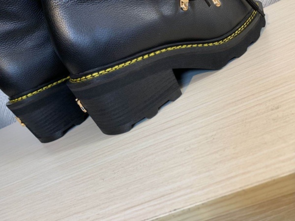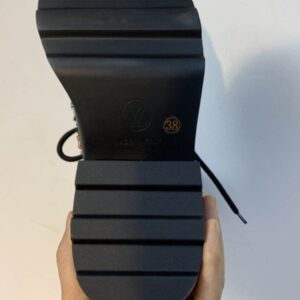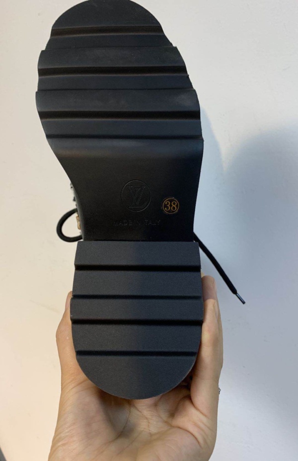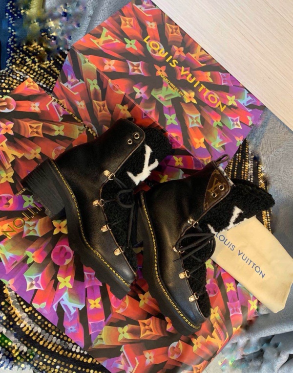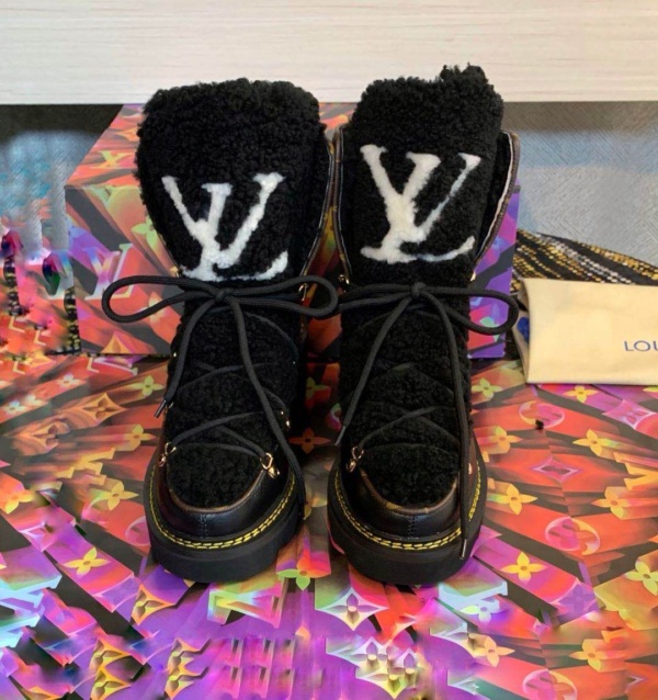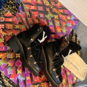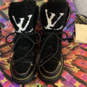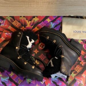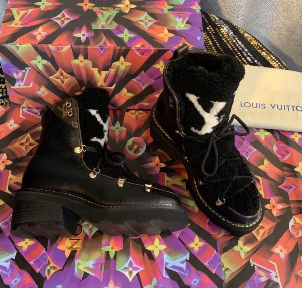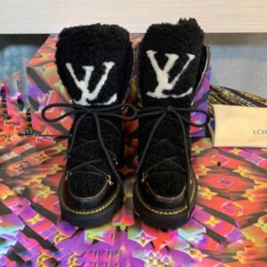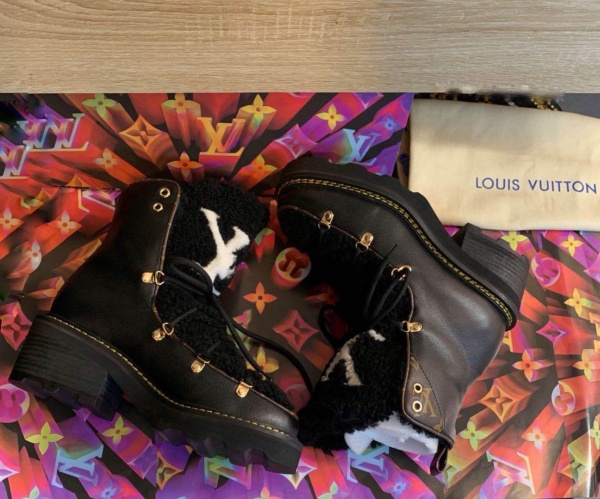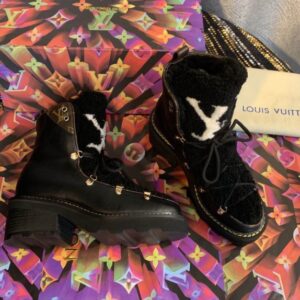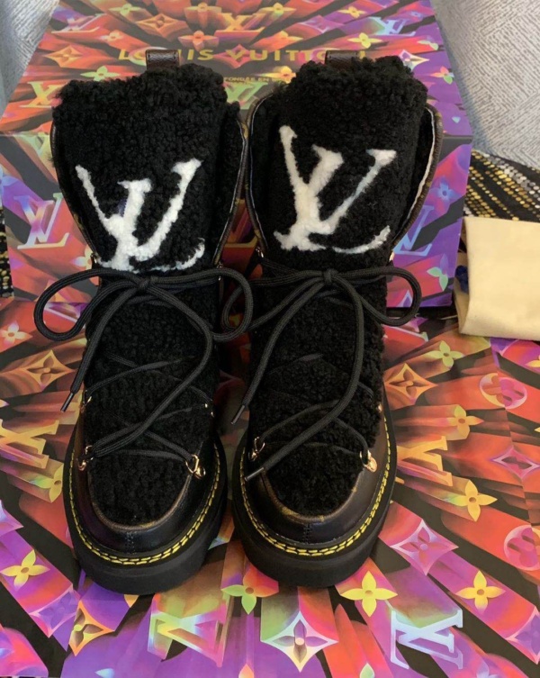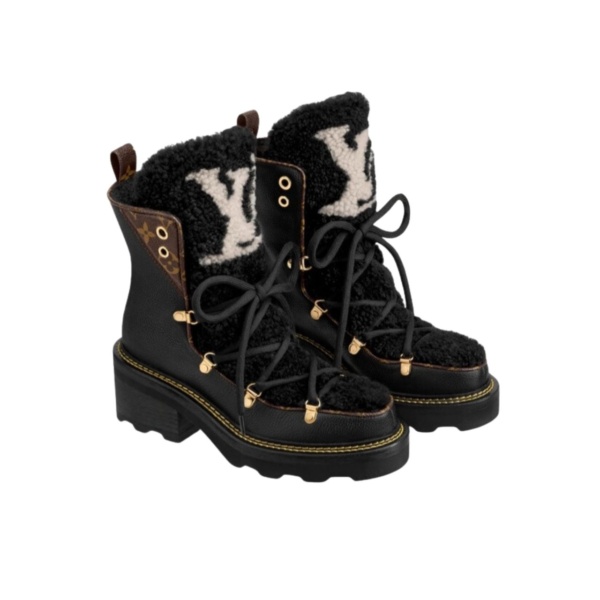 A warm and cozy wool lining AND a shearling tongue with an oversized LV Initial signature.