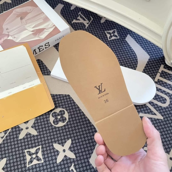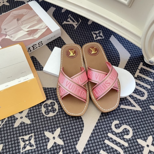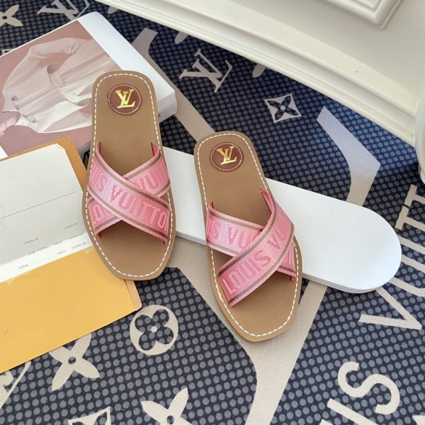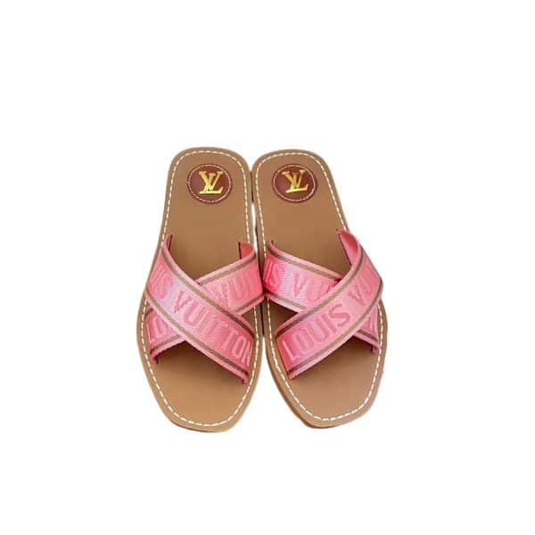 LOUIS VUITTON CROSS STRAP FLAT SLIDES LIGHT PINK