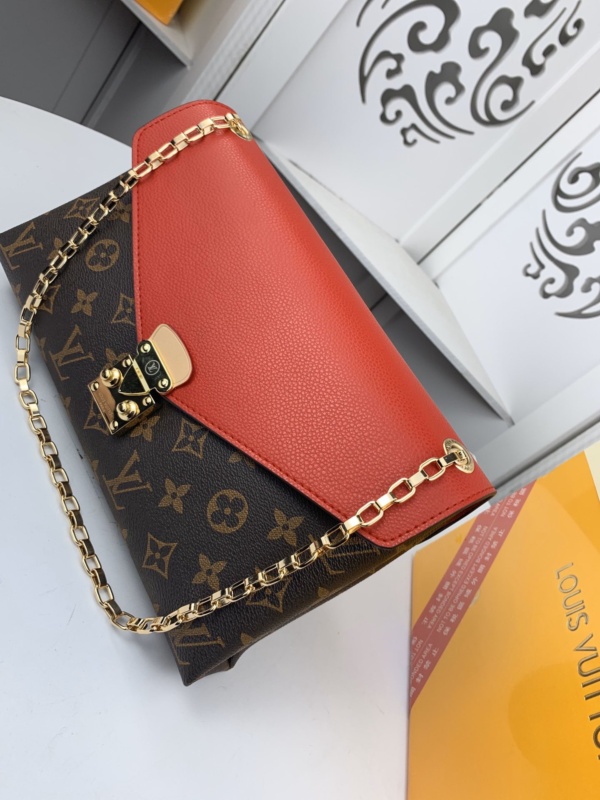 LOUIS VUITTON PALLAS CHAIN CANVAS MONOGRAM SHOULDER BAG RED