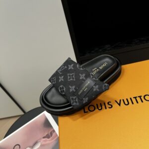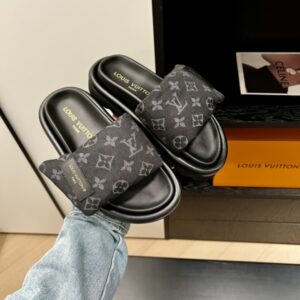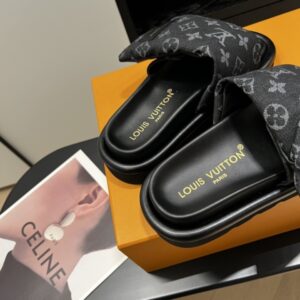 LOUIS VUITTON POOL PILLOW FLAT COMFORT MULE SANDALS DENIM GREY 1ACJ0J