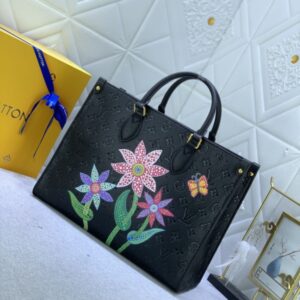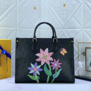LOUIS VUITTON x YK ON THE GO MM WITH FLOWER MARQUETRY IN BLACK 35CM M46416