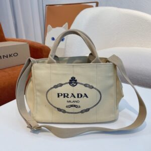 PRADA CANAPA TOTE CANVAS BAG IN BEIGE 29CM