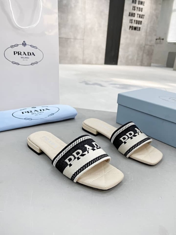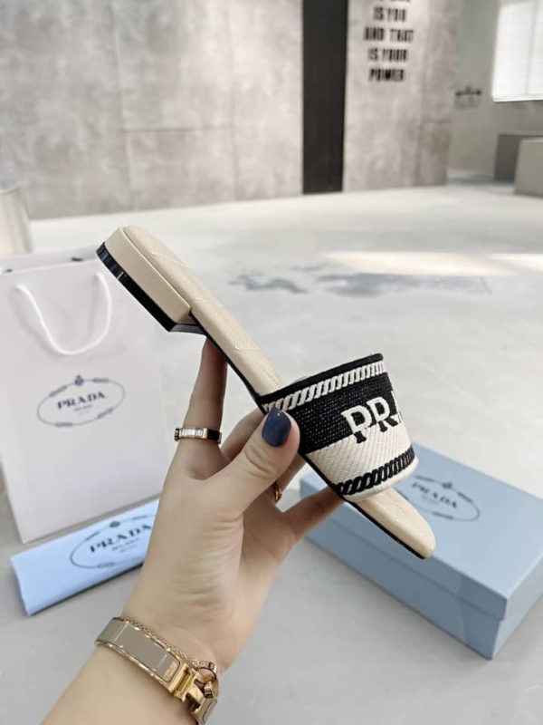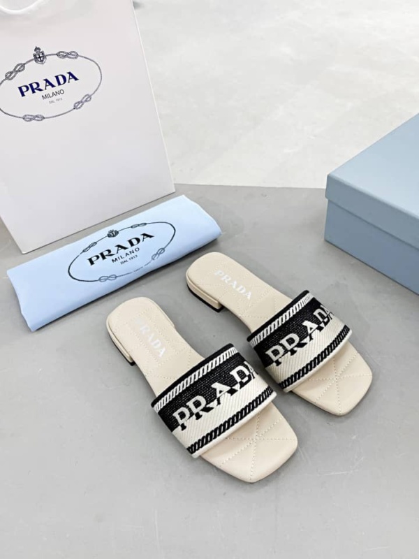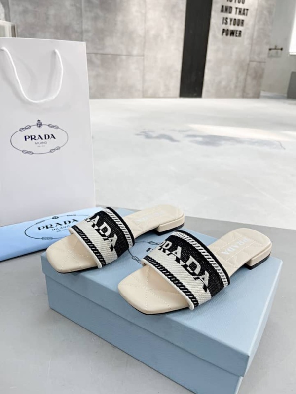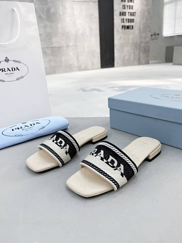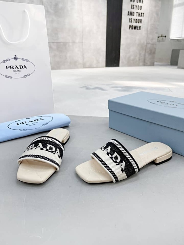 PRADA EMBROIDERED FABRIC SLIDES BLACK WHITE 1XX6123LKBF0N12FB010