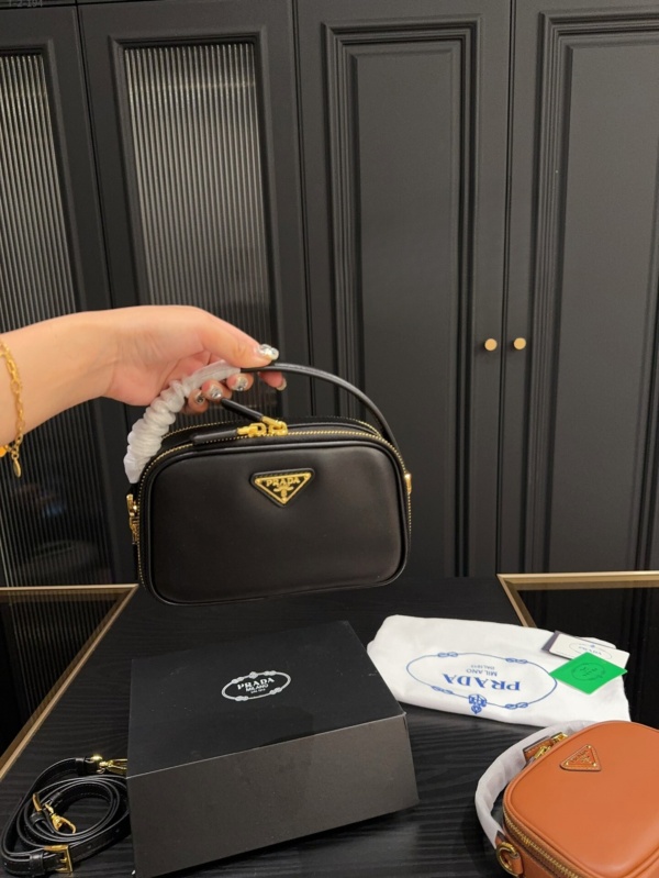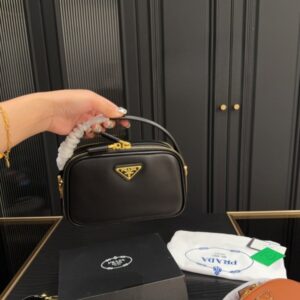 PRADA ODETTE LEATHER MINI BAG BLACK 18CM 1BH203 ASK F0002 V OVO