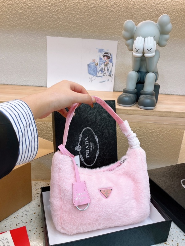 PRADA RE EDITION 2000 BAG IN SHEARLING PINK 23CM