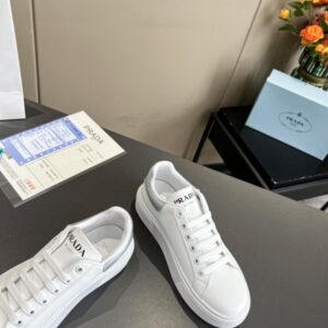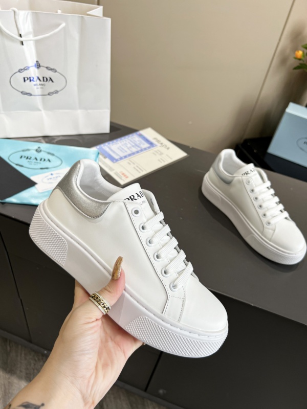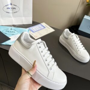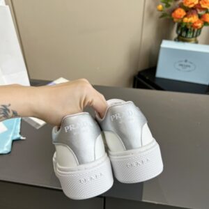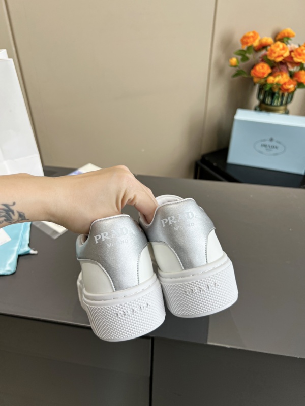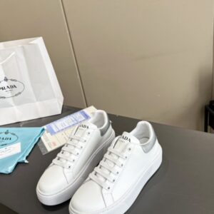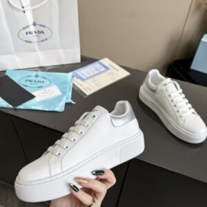 PRADA SNEAKERS IN WHITE LEATHER WITH SILVER LOGO