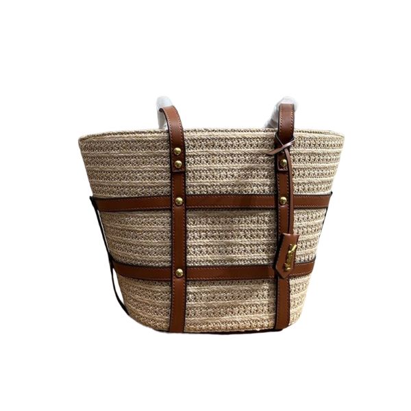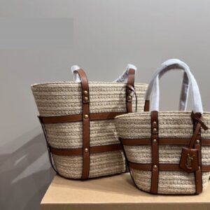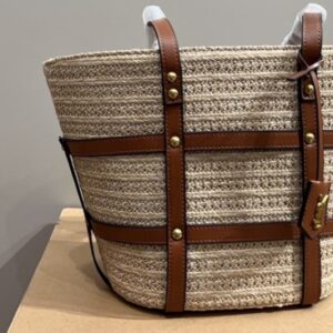 Be the first to review “SAINT LAURENT PANIER STUDDED LEATHER TRIMMED WOVEN RAFFIA TOTE BAG 25CM” Cancel reply