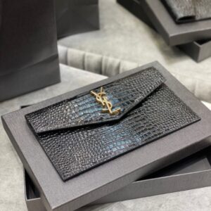 SAINT LAURENT UPTOWN POUCH IN CROCODILE EMBOSSED SHINY LEATHER 565739DND0J1000