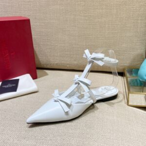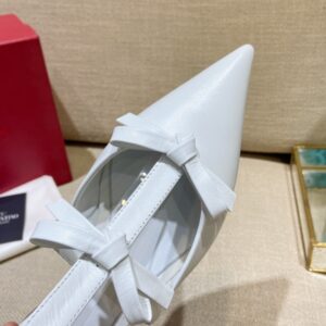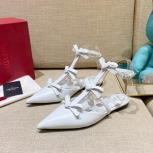 Leather Ballerina Flat in white leather with bow accents