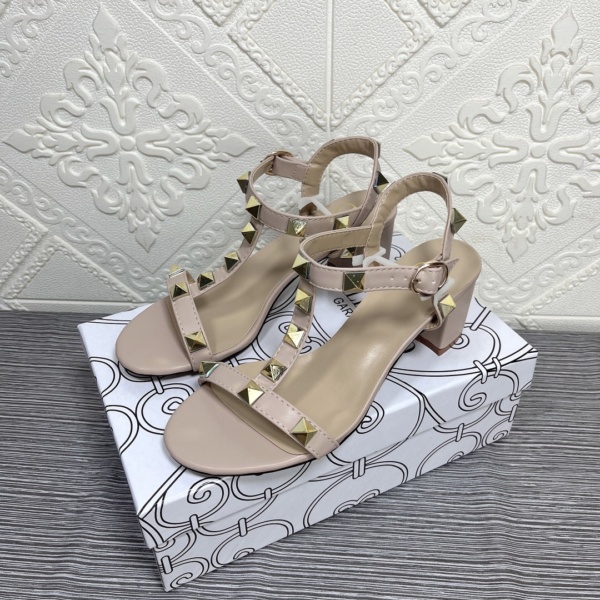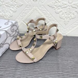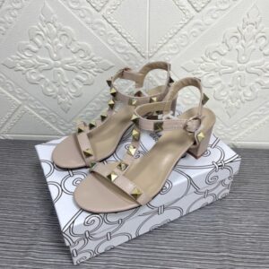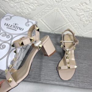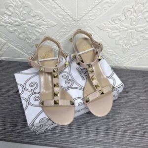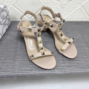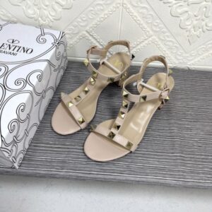 VALENTINO GARAVANI ROCKSTUD CALFSKIN LEATHER SANDAL BEIGE
