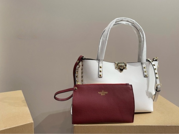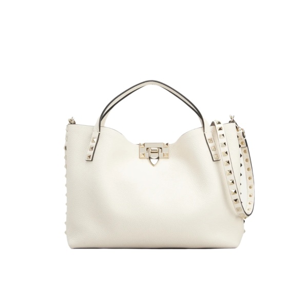 VALENTINO GARAVANI ROCKSTUD CALFSKIN SMALL TOTE BAG WHITE 26CM