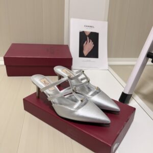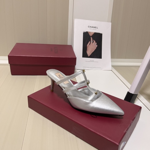 VALENTINO GARAVANI ROCKSTUD WISPY MULE IN CALFSKIN SILVER