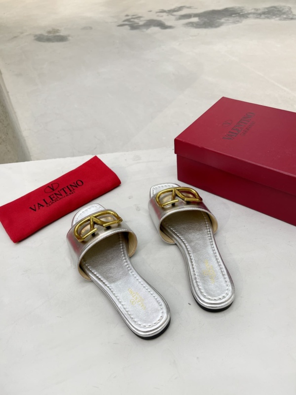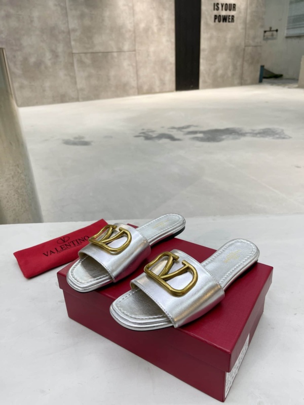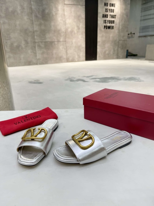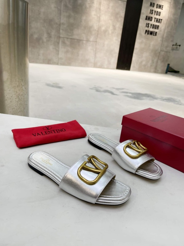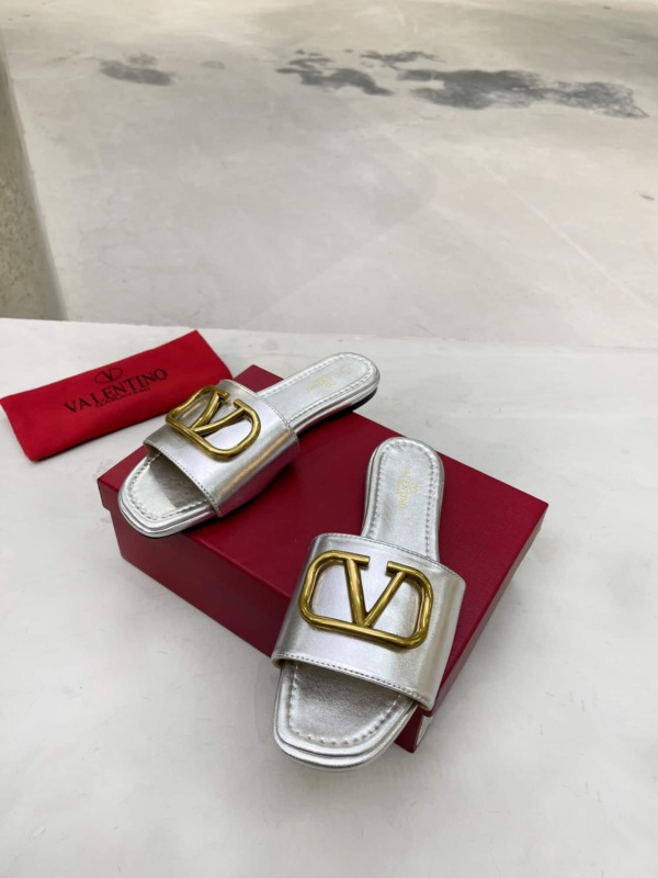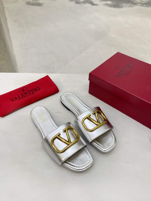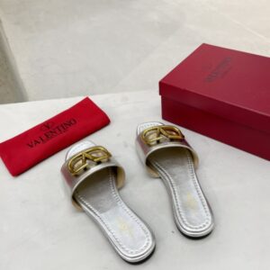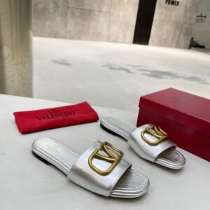 VALENTINO GARAVANI VLOGO SIGNATURE SLIDE SANDAL SILVER