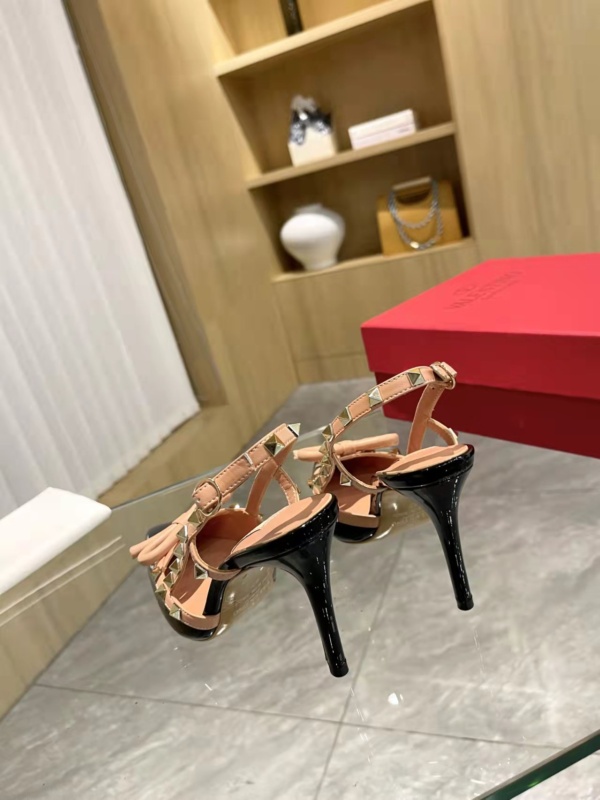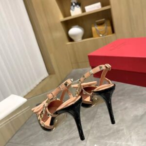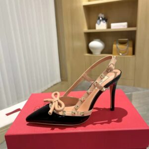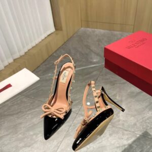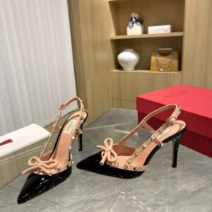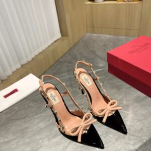 VALENTINO ROCKSTUD BOW 100 PATENT SLINGBACK PUMP BLACK PINK