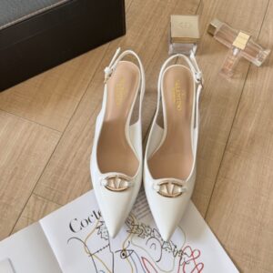 VALENTINO VLOGO SHINY LEATHER LEATHER HEELS IN WHITE